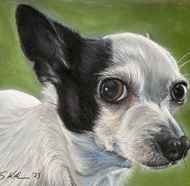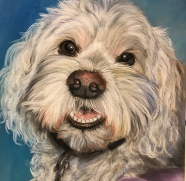 “Lyn did my girl Mandy's portrait and I have to say she did a gorgeous job! The detail to Mandy's face was like it was a photo!! She really captured my girls eyes & and the glow in them perfectly. Mandy has a funny little pink & black nose & Lyn really captured that perfectly, also. I was extremely pleased with the portrait & highly recommend her!"